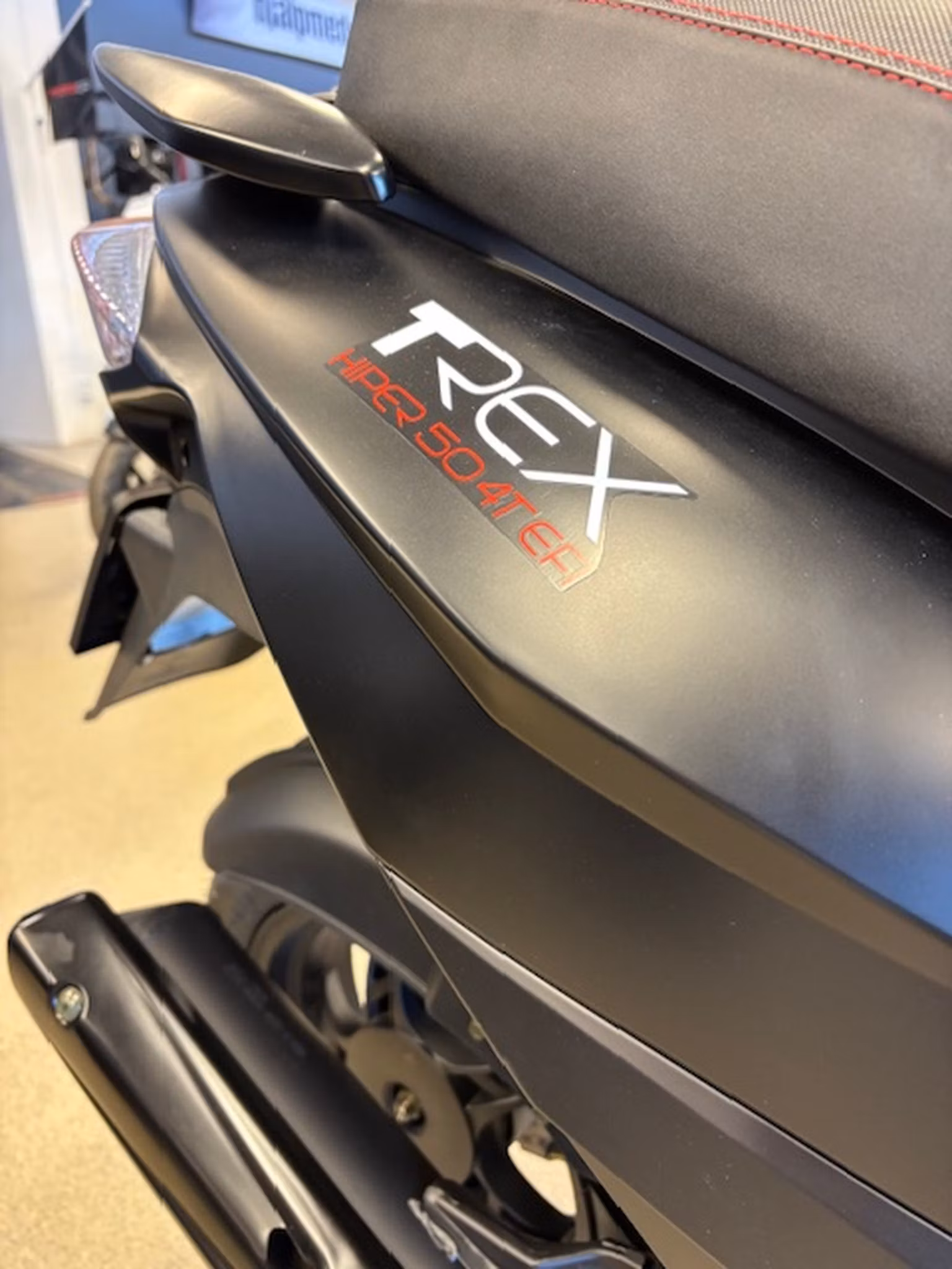 Med sina dubbla strålkastare och blinkers/bak/ bromsljus i LED lyser den upp vägen även på de mörkaste kvällarna. Färgsättningen i mattsvart är de som efterfrågas mest i Sverige. Med sina grova däck sladdar man säkert på en grusväg men ligger lika stabilt på asfalt. T-Rex är en riktigt bra moped för både stads och landsvägskörning.