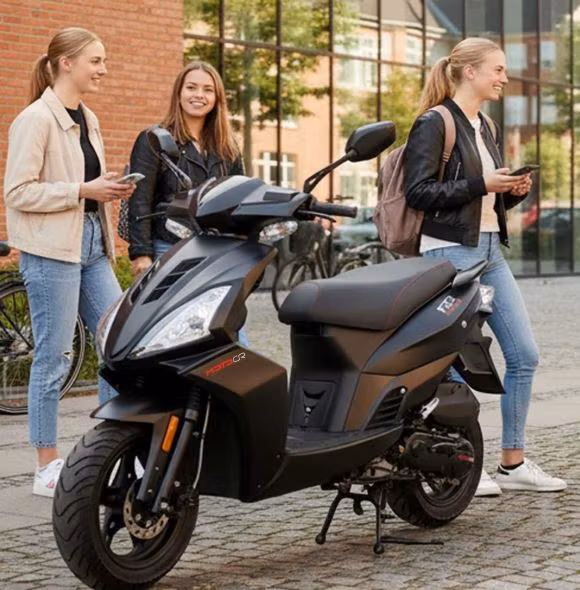 Motor CR T-Rex är en fullstor moped där passagerare lätt får plats, utfällbara fotstöd finns. Tydlig LCD-display, skivbroms fram, trumbroms bak, USB port finns för laddning av telefon.