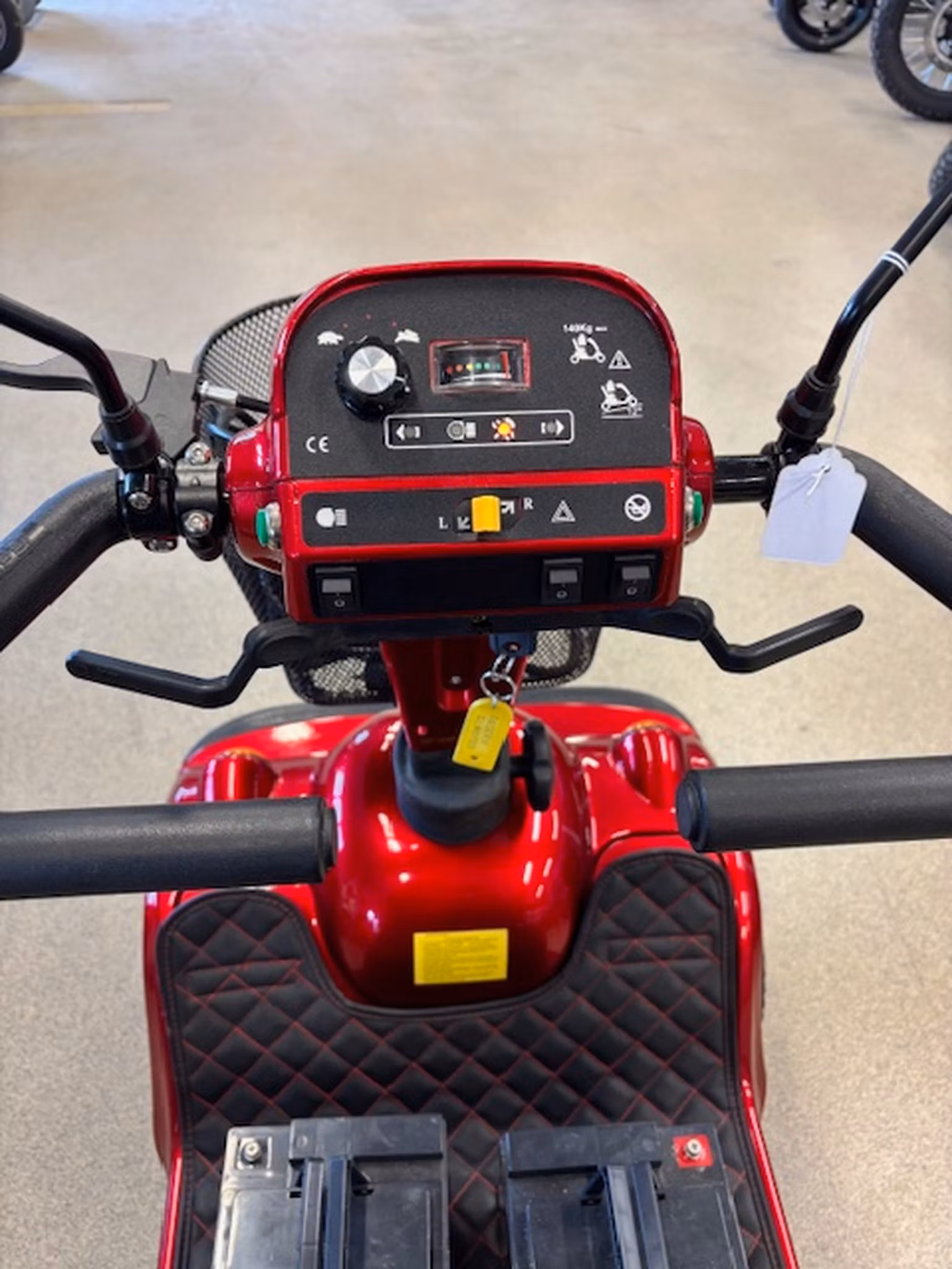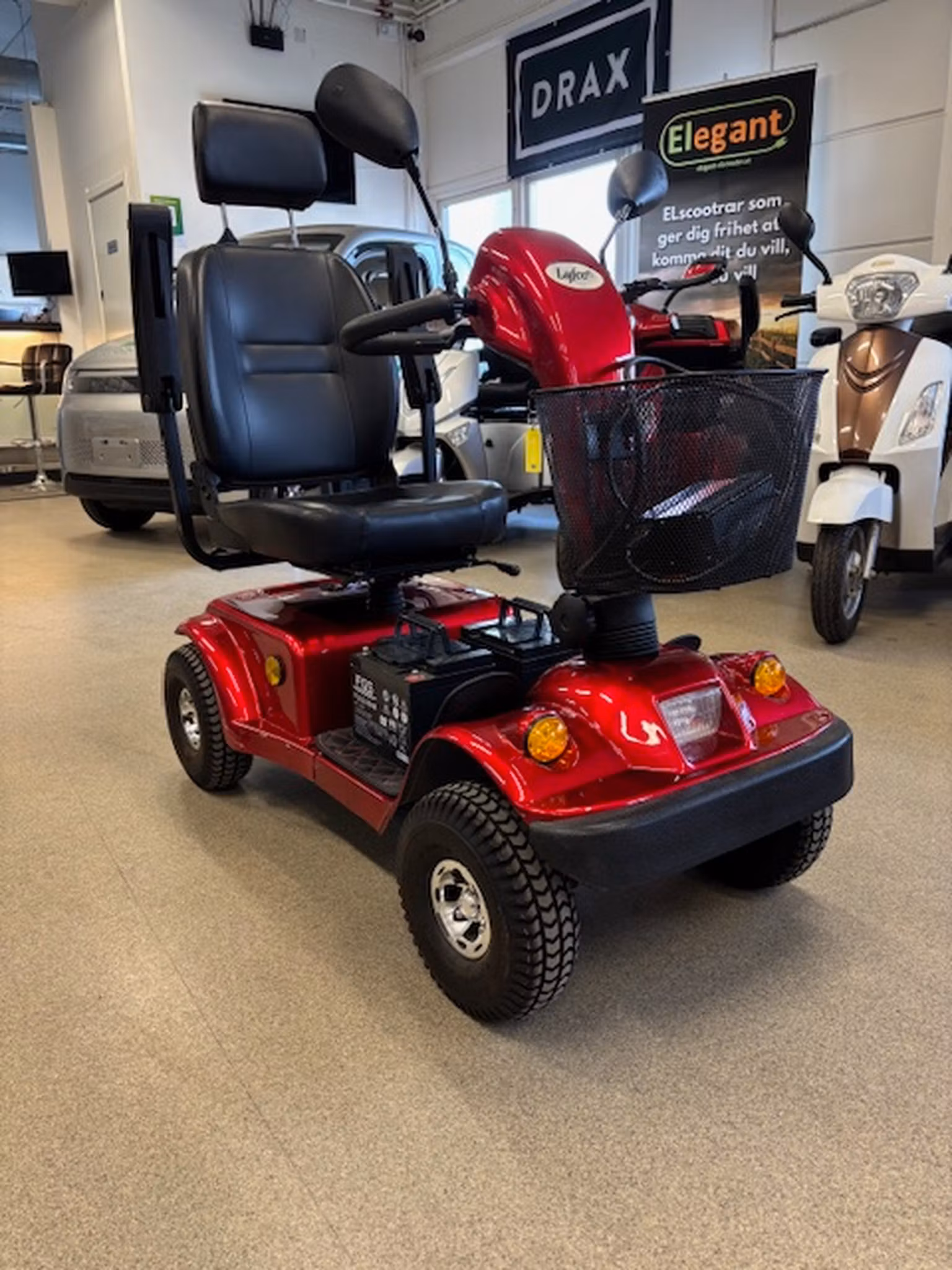 Begagnad promenadscooter i nyskick, Motorn är stark med sina 800W i effekt, den har två batterier på 55AH och tar sig ca 3 mil i räckvidd.